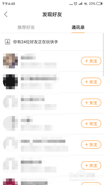 返回到快手通信录界面并刷新一下,如许就会显示出通信录老友了。