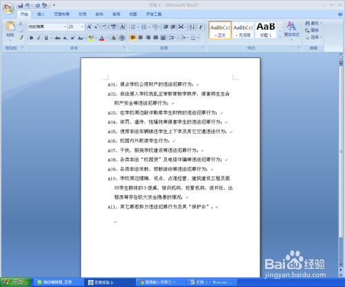 打开一个Word文档,我们要个内容进行“A1”这种形式的主动编号