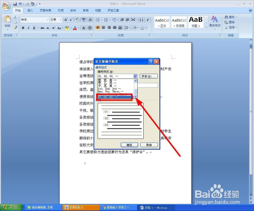 单击“下拉”按钮,找出和本身设想最接近的编号形式单击