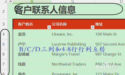 下面是经由过程WPS表格打开的一篇文档,若是我们想要将B、C和D三列数据和第4行到8行的数据转换,应该如何操作呢?
