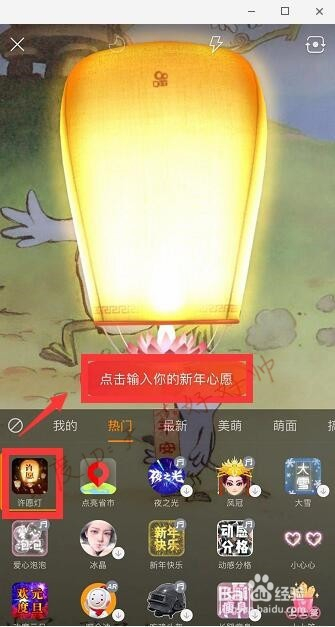 选择热点分类里面的“许愿灯”,再点击一下许愿灯下的红色方框。