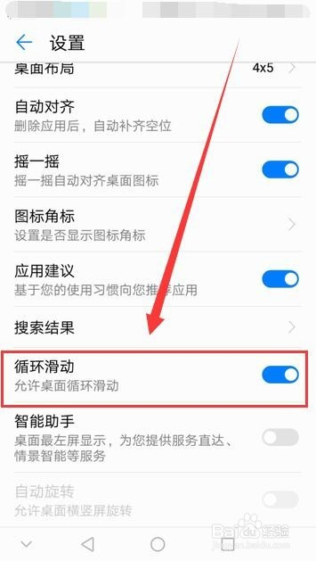轮回滑动选项,可以设置桌面是否许可轮回滑动。