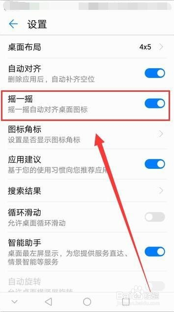 摇一摇选项,摇一摇后可以实现主动对齐桌面图标。