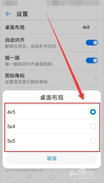 桌面结构窗口中,可以选择桌面结构体例,本人选择默认的4×5选项。