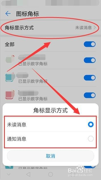 点击角标显示体例,可以选择角标显示未读动静仍是通知动静。