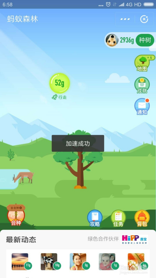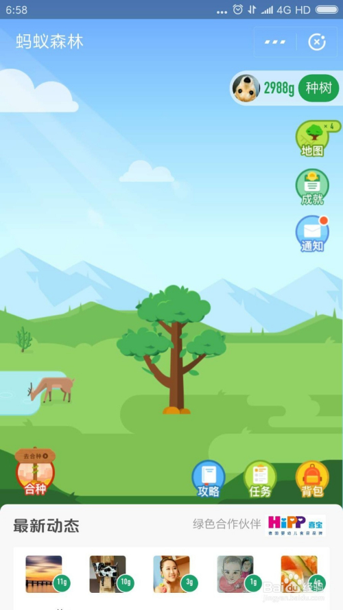 进入蚂蚁丛林后我们可以看到本身的小树和能量值。