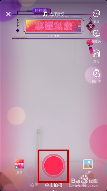 然后点击底部的【录制】按钮起头录制新年签的视频。