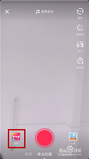 在录制界面的左下角找到并点击【道具】功能。