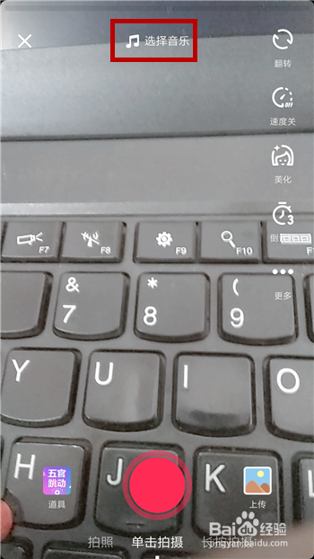 这个五官跳动的结果是跟着音乐的播放而跳动的,所以需要添加音乐,点击顶部的【选择音乐】。