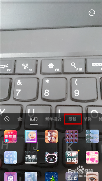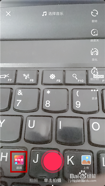 然后在录制视频的时辰先点击左下角的【道具】。