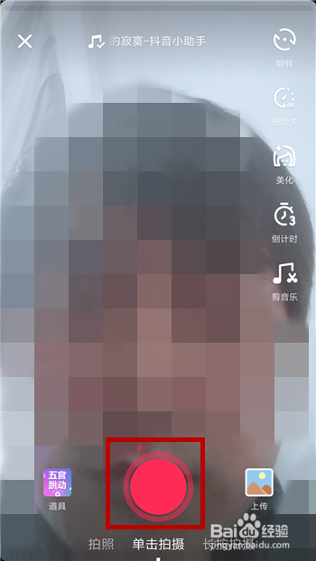 利用音乐后返回录制界面,这时辰我们就可以看到跟着音乐的播放我们的五官会不竭的跳动,很是的有趣,点击【录制】按钮起头录制视频吧。