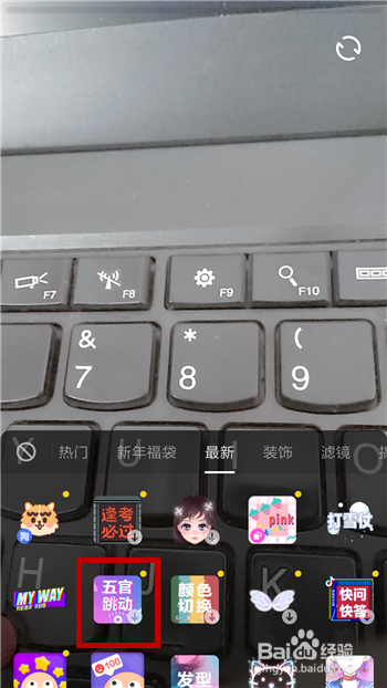 买比来分类下方找到【五官跳动】道具,然后点击利用这个道具。