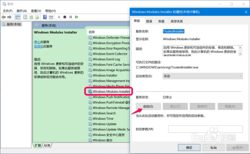 第一步:在当地办事窗口中启用 Windows Modules Installer 办事。