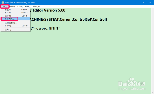 点击记事本左上角的【文件】,鄙人拉菜单中点击【另存为】;