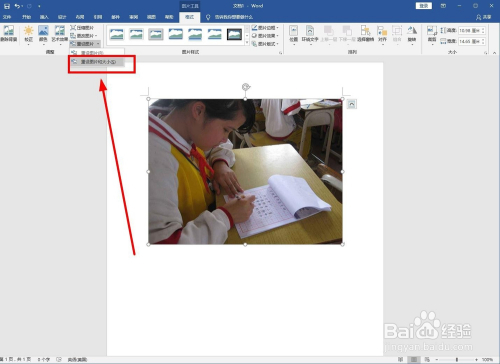 鄙人拉列表中,选中“重设图片和大小”单击