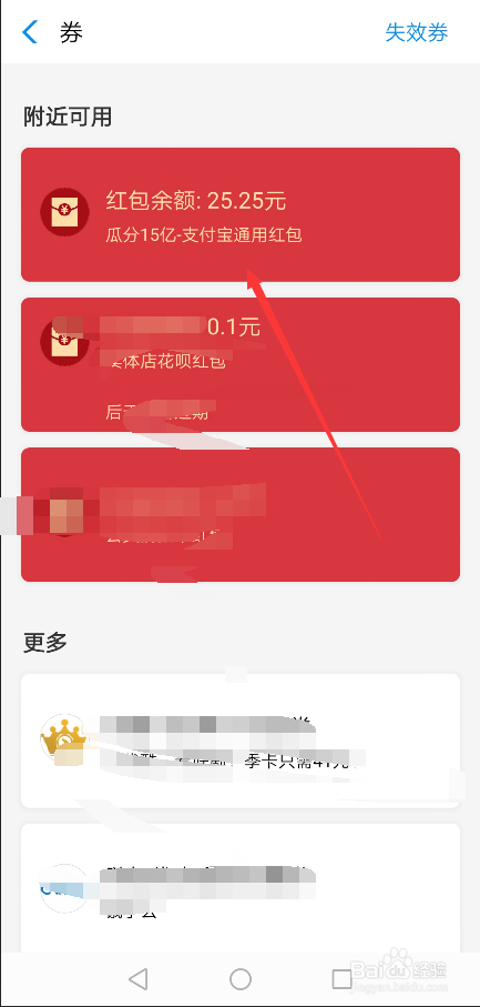 进入付出宝券界面后就可以看到所有的红包了,如许就可以看到付出宝瓜分15亿所得的红包,如下图所示。