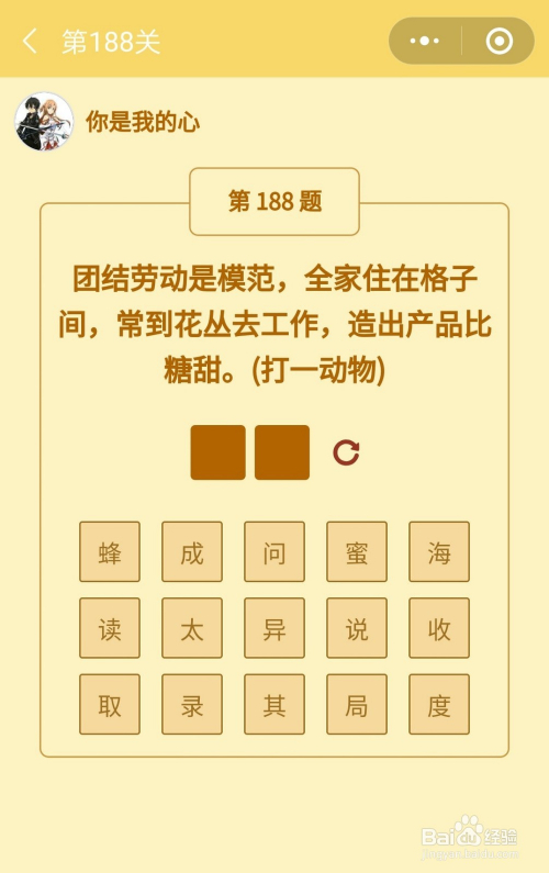 第188关谜底是蜜蜂。