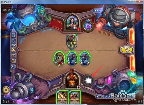 这是我们的狞恶乱兵士进犯力正好达到11,直接进犯对面英雄就可以了,如图所示;