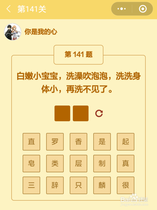 第141关谜底是喷鼻皂。