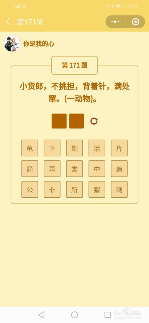 第171关谜底是刺猬。