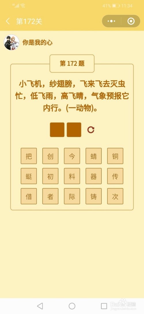 第172关谜底是蜻蜓。