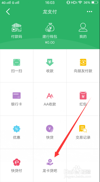 进入到龙付出页面,找到下方最后一个龙卡贷吧。
