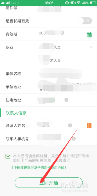 初次开通需要进行申请,填写本身的具体信息,包罗姓名、身份证、联系人等,勾选和谈,完当作后点击底部的【当即开通】按钮。