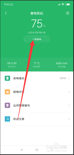 省电优化列表主动为我们查出了省电的模式,此时点击下面的一键省电按钮。