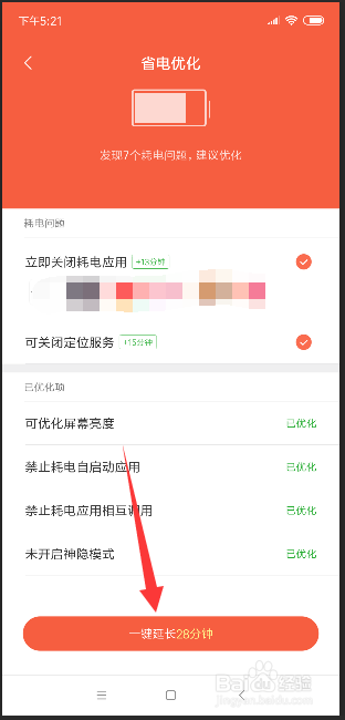 系统会主动查抄出耗电量比力长的运用,然后规划出一件可以耽误手机待机时候,多久点击最下面的一键耽误。