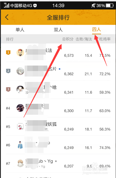 最后我们点击右上方的四人,我们就可以看到绝地求生刺激战场上四人模式下的全服积分排名啦