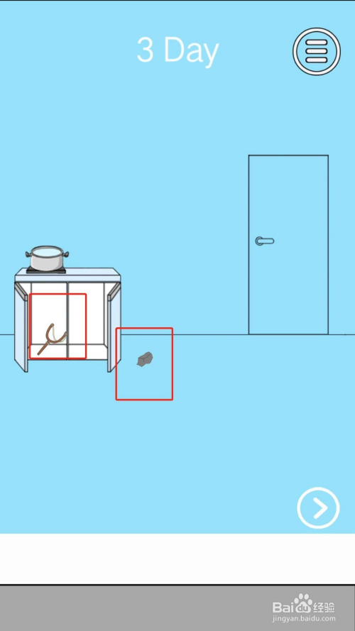 第三关:掏出柜子里的弹弓和地上的石子。用这两样在第二页把灯塔打坏。取下泡面放到锅里。