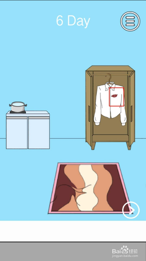 第六关:掏出柜子里衣服上的口红印,把口红印放在公青蛙上酿成王子,拿到泡面放到锅里。