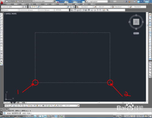 点击右边东西栏中的【缩下班具】,框选矩形图案后,按下空格键。点击下方号令栏中的【参照】,按图示确定出三个点,完当作对图案缩放2倍(如图所示);