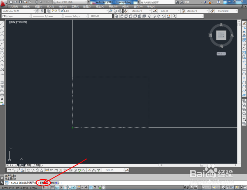 点击右边东西栏中的【缩下班具】,框选矩形图案后,按下空格键并鄙人方号令栏中输入:2,将矩形图案放年夜2倍(如图所示);
