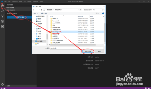 打开Visual Studio Code后,选择“打开文件夹”,浏览选择上一步建立的目次,如下图所示: