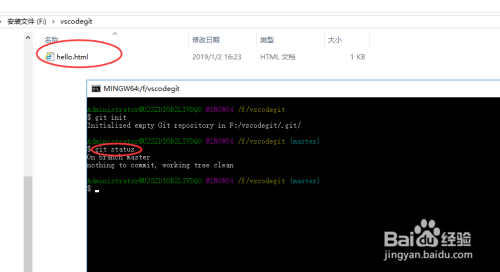 我们返回到项目目次中,利用Git Bash Here打开Git号令行,输入git status,可以查看当地库内容,如下图所示: