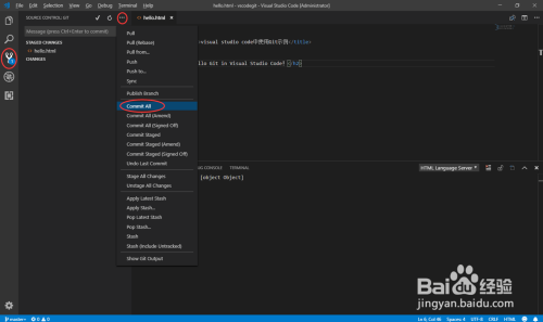 接下来,选择“Commit All”,将暂存区的内容提交到当地库中,如下图所示: