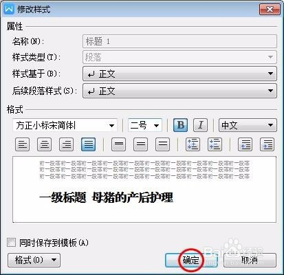 第四步:按照需要设置一级题目的字体和字号,单击“确定”按钮。
