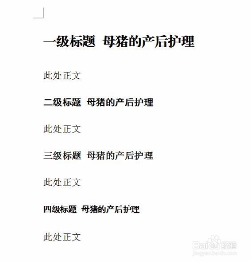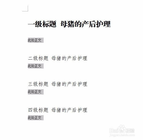 第七步:按照上述方式设置其他几级题目,最终结果如下图所示。