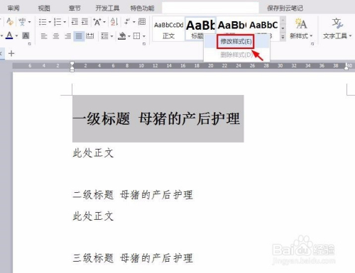 第三步:在题目1处单击鼠标右键选择“点窜样式”。