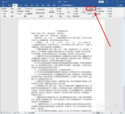 找到“文本”选项中的“文档部件”单击