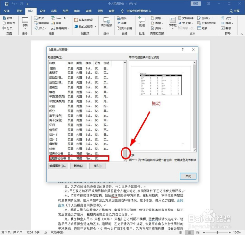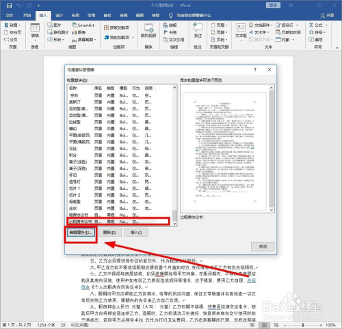 拖动滚动条,上下滑动“构建基块”内容部门,找到要从头定名或者删除的基块选中