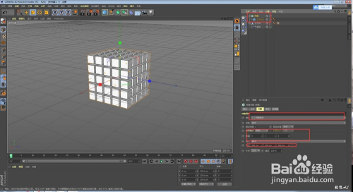 我们也可以利用克隆来进行相关操作;建立一个克隆,把一个新建的立方体丢进去,设置相关属性后C失落,然后毗连对象加删除