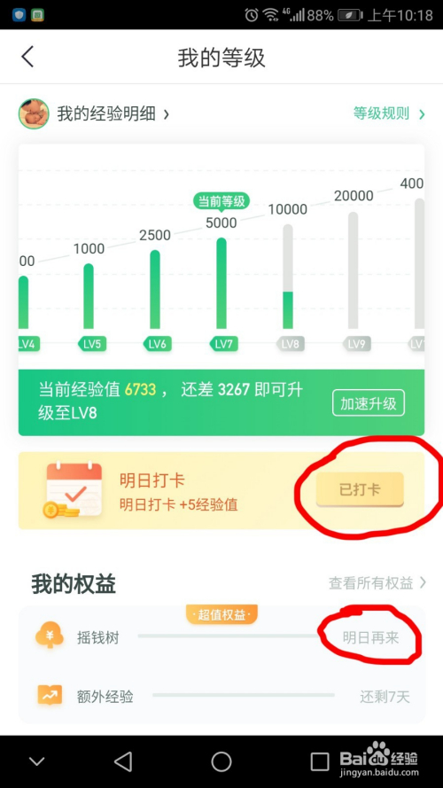 进入后标的目的下拉动,点击红色标识表记标帜处领取经验值,日常平凡我们浏览新闻和分享内容时都可以获得经验值,今朝介绍的是获得天天的签到经验值不要错过。