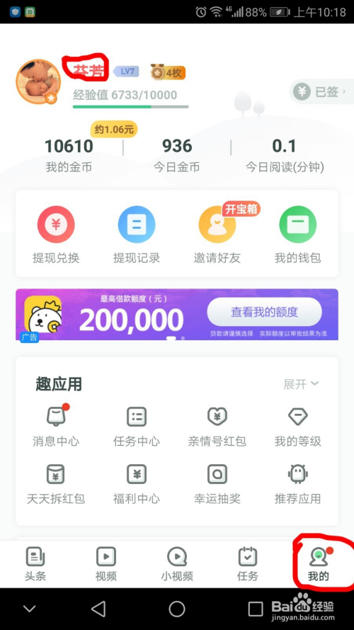 除了赚金币,我们还可以积攒经验获得高档级,高的品级一般可以获得高的金币回报和特权。天天在“我的”页面,点击红色标识表记标帜处本身的微信名称。