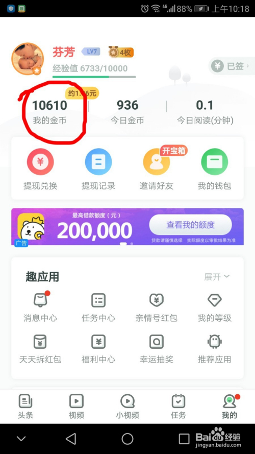 同窗们点击浏览这个页面的新闻内容城市有金币奖励的,红色标识表记标帜处的圆圈转满一圈就会获得响应金币奖励,金币就是我们能兑换人平易近币哦 这都是真金白银。当然想让红包计时器转起来还需要我们真正的去浏览这篇新闻,就是滑动页面,若是你打开不动,计时器一会也会停下的。头条里的新闻都是可以赚钱的,内容丰硕多彩。