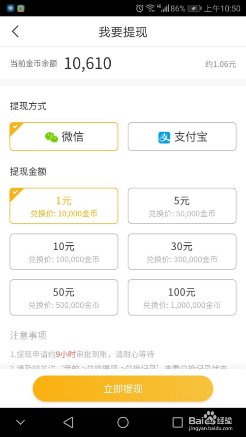 点击提现兑换,进入提现页面