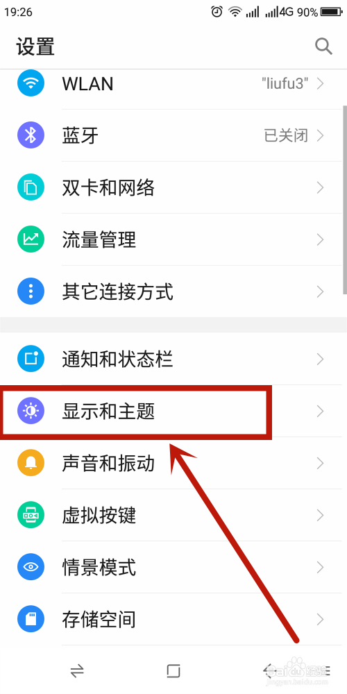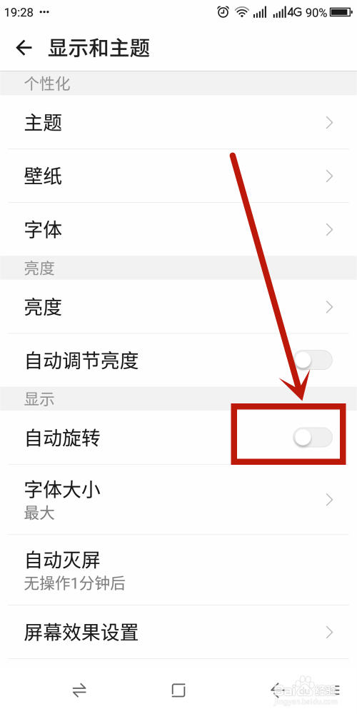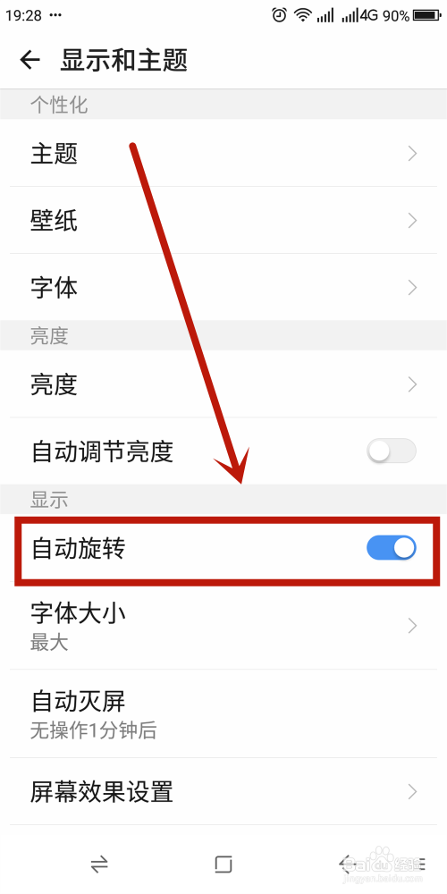 在显示和本家儿题页面,找到“主动扭转”,看一下系统是默认打开该功能的(该项后面的开关是蓝色)