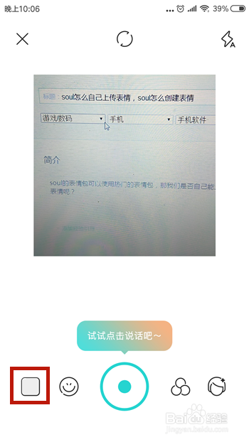 点击后会打开选择界面,这里可以直接摄影,想要添加手机里的照片作为脸色包的话需要点击【相册】按钮。