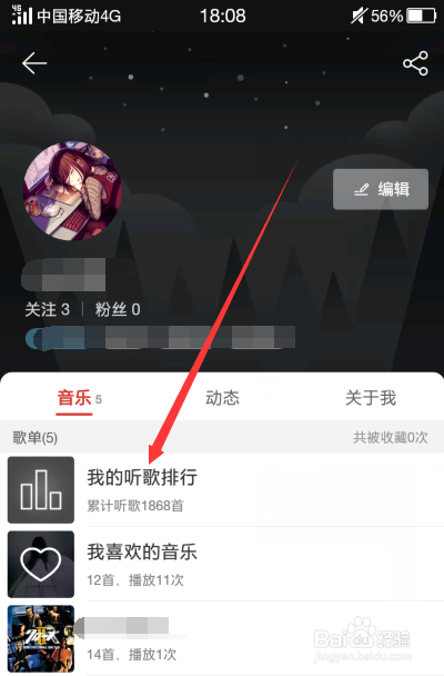 接着我们点击页面上的【我的听歌排行】